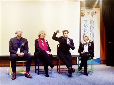 國際大咖支招文創(chuàng)產(chǎn)業(yè)發(fā)展(從左至右分別為John Howkins、Orly Fromer、Stu Levy和Anne Lettr e)。深圳僑報資料圖