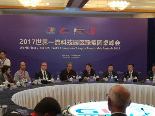5月10日下午,2017世界一流科技園區(qū)聯(lián)盟圓桌峰會(huì)在成都世紀(jì)城國(guó)際會(huì)議中心成功舉行。本次峰會(huì)以“攜手共創(chuàng),領(lǐng)航未來(lái)”為主題,旨在集中國(guó)內(nèi)外科技園區(qū)的力量和智慧,交流園區(qū)建設(shè)的經(jīng)驗(yàn)和思想?萍疾炕鹁嬷行闹魅螐堉竞辍⒊啥际形N、市總工會(huì)主席吳凱出席會(huì)議并致辭。會(huì)議由法國(guó)索菲亞科技園CEO菲利普·馬里亞尼主持。