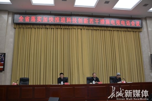 全省落實(shí)加快推進(jìn)科技創(chuàng)新若干措施電視電話會(huì)議現(xiàn)場。記者吳新光攝