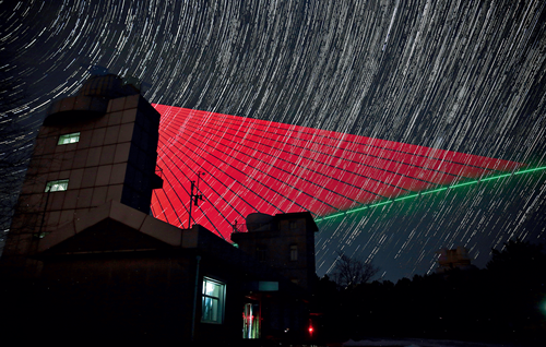 2016年11月28日,河北興隆觀測站,“墨子號”量子科學(xué)實驗衛(wèi)星過境(合成照片)金立旺攝/本刊