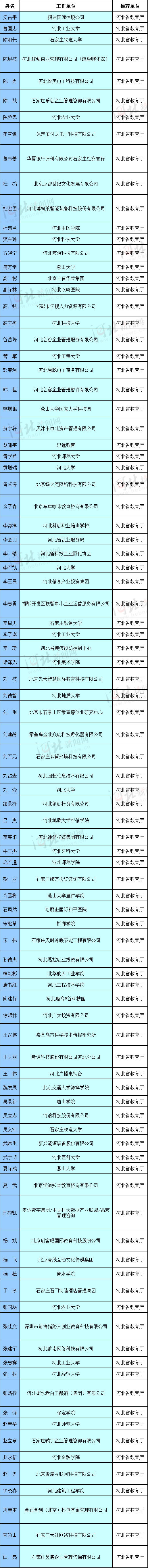 河北省入選全國萬名優(yōu)秀創(chuàng)新創(chuàng)業(yè)導師人才庫首批入庫導師名單