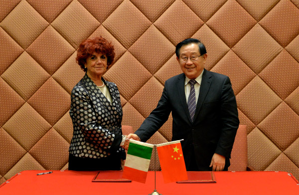 在第八屆中意創(chuàng)新合作周期間,中華人民共和國(guó)科學(xué)技術(shù)部部長(zhǎng)萬鋼和意大利共和國(guó)教育、大學(xué)與研究部部長(zhǎng)瓦萊麗亞·費(fèi)德莉(Valeria FEDELI)于2017年11月13日舉行了會(huì)晤。