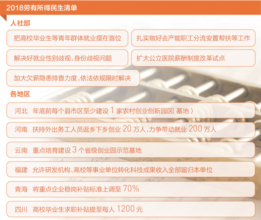 在全國層面,記者從人社部獲悉:2018年促進(jìn)“勞有所得”主要有以下重點——
