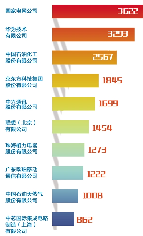 此外,作為研發(fā)密集型企業(yè)的代表,中芯國際集成電路制造(上海)有限公司也憑借授權(quán)862件發(fā)明專利躋身十強。“這表明企業(yè)只要重視創(chuàng)新,加大專利保護和運用,也能后來居上。”蘇平說。