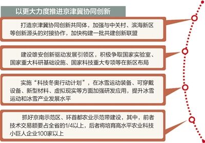 為加速“京津研發(fā)、河北轉(zhuǎn)化”,今年,河北省將以更大力度推進京津冀協(xié)同創(chuàng)新。打造京津冀協(xié)同創(chuàng)新共同體,加強與中關(guān)村、濱海新區(qū)等創(chuàng)新源頭的對接協(xié)作,加快構(gòu)建一批共建創(chuàng)新聯(lián)盟;建設(shè)雄安創(chuàng)新驅(qū)動發(fā)展引領(lǐng)區(qū),積極爭取國家實驗室、國家重大科研基礎(chǔ)設(shè)施、國家科技重大專項等在新區(qū)布局;實施“科技冬奧行動計劃”,在冰雪運動裝備、可穿戴設(shè)備、新型材料、虛擬現(xiàn)實等方面加強研發(fā)應(yīng)用,提升冰雪運動和冰雪產(chǎn)業(yè)發(fā)展水平;抓好京南示范區(qū)、環(huán)首都農(nóng)業(yè)示范帶建設(shè),其中,前者技術(shù)交易額要占全省的1/4以上,后者將培育高水平農(nóng)業(yè)科技小巨人企業(yè)100家以上。