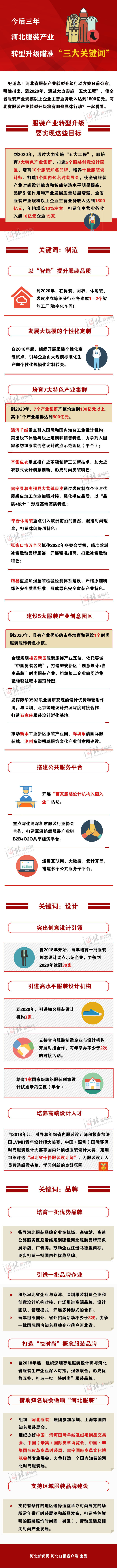 好消息!河北省服裝產(chǎn)業(yè)轉(zhuǎn)型升級(jí)行動(dòng)方案日前公布,明確指出,到2020年,通過大力實(shí)施“五大工程”,使全省服裝產(chǎn)業(yè)規(guī)模以上企業(yè)主營(yíng)業(yè)務(wù)收入達(dá)到1800億元。河北省服裝產(chǎn)業(yè)轉(zhuǎn)型升級(jí)將有哪些具體行動(dòng)?一起看看。